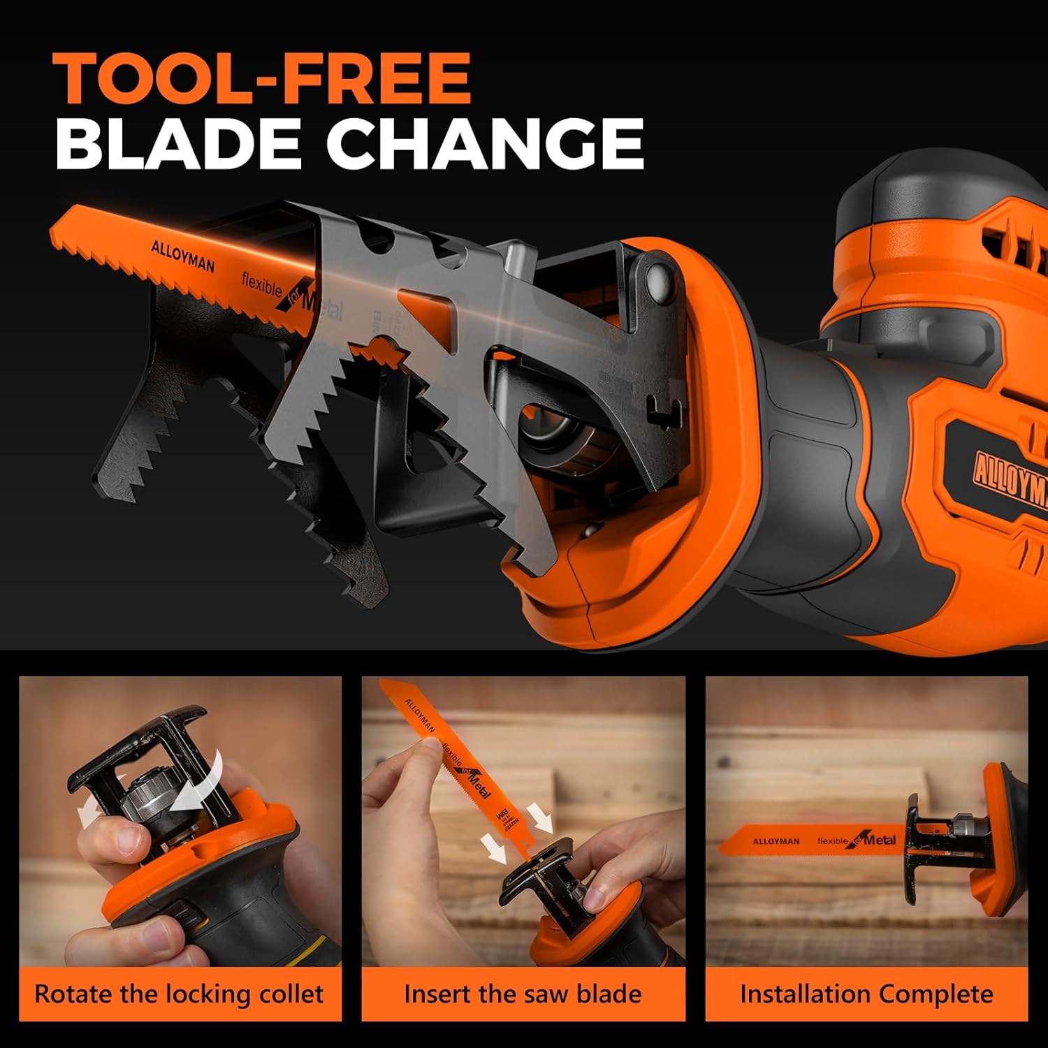| Included Components | 1 x Alloyman Cordless Reciprocating Saw、20V 2.0Ah Battery、Charger、5x Saw Blades、Safety Goggle |