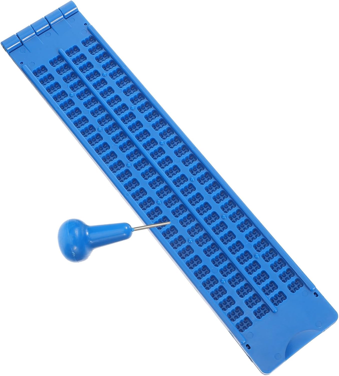 Package List 4 x Braille Writing Slate 4 x Stylus Characteristics -Size (stylus):5.50X2.00X2.00cm/2.16X0.79X0 braille plate for blind. -Note: , 28 per line braille supply. -Material:Plastic braille board for blind people -Color:Blue blinds leaning writing slate -Size (board):21.70X4.50X0.50cm/8.53X1.77X0 plastic braille writing - Specially designed , designed for the blind, to help the blind better study and work braille - Lightweight and portable, can be used for outdoor use, this braille writing board is useful for blind braille writing fingerboard. - Fine workmanship, the braille writing plate for blind will not easy to deform or break, bring much convenience braille slate for blind. - The braille writing slate kit can be used for blind studying use, easy to use plastic braille board set. - Made by plastic material, this braille writing fingerboard is reusable, could be used for very long time braille plate with stylus.Goods Descriptionsturdy braille writing slate Light wight, suitable for the blind, clear and fluent writing.plastic braille plate Are you looking for practical braille writing slate? Or whether you are in search of sturdy braille writing board that can do multiple works at once? , ! Our braille writing slate kit must meet your needs