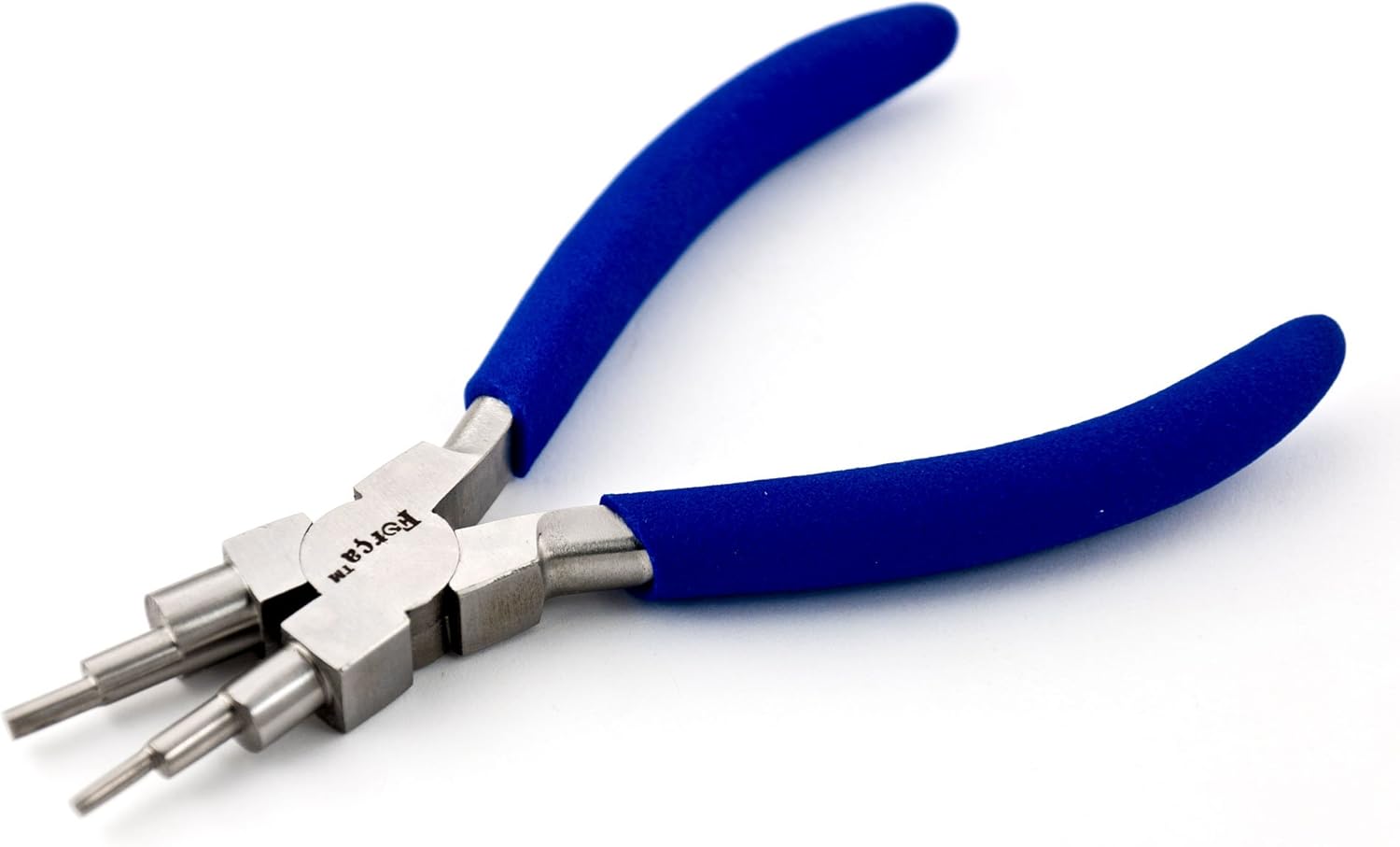 Using these Multi size wire looping pliers is easy to make Ear Wires, Jump Rings in many sizes, S Hooks, Clasps, Bails for Pendants on wire by wrapping and forming your connections around the jaws. These pliers are composed of six cylindrical barrels with different diameters in each jaw of the pliers and are made of German hardened stainless steel with an ergonomic design to diminish hand fatigue.