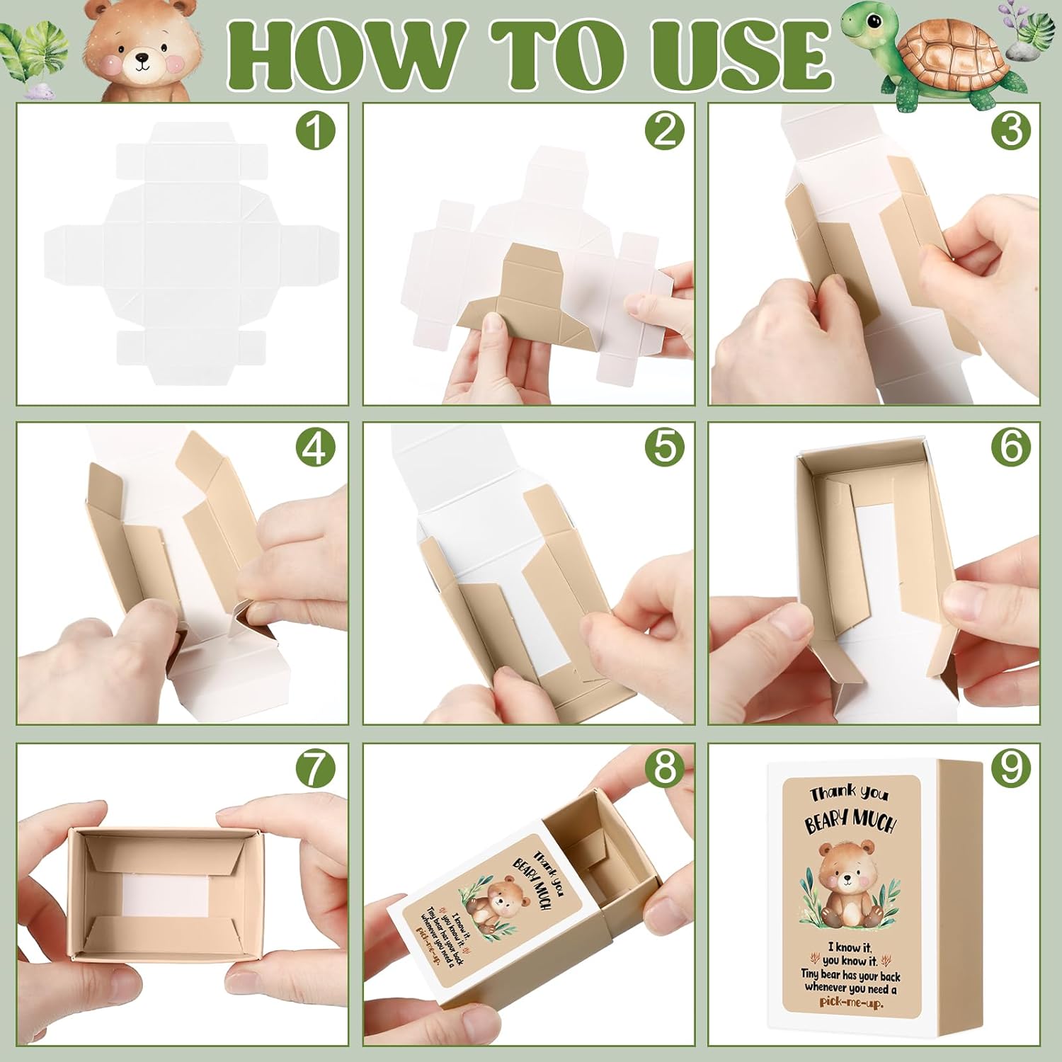 1Features: Immerse yourselves into a world of fun and warmth with our team building gifts bulk set. Composed of 50 charmingly delightful sets, each adorned with intricately designed animal resin toys and animal pun inspirational cards. The materials in the items are nice in quality. The figurines are made from durable, multicolored resin, the pun filled inspirational cards are from sturdy paper, and the simulated seagrass that houses these enchanting treats are made of silk flowers. The quality of the materials gives the products a classic look and long lasting durability. Specifications: Material: resin, paper Color: multicolor Size: Team Building Gifts Bulk packaging box: 7 x 4.9 x 3 cm Inspirational cards: 6.5 x 4.5 cm Package includes: 50 x Cute animal resin toys 50 x Funny animal pun inspirational cards 50 x Gift boxes 1 Bag of simulated seagrass Notes: Manual measurement, please allow slight errors on size. The color may exist a slight difference due to different screen displays.