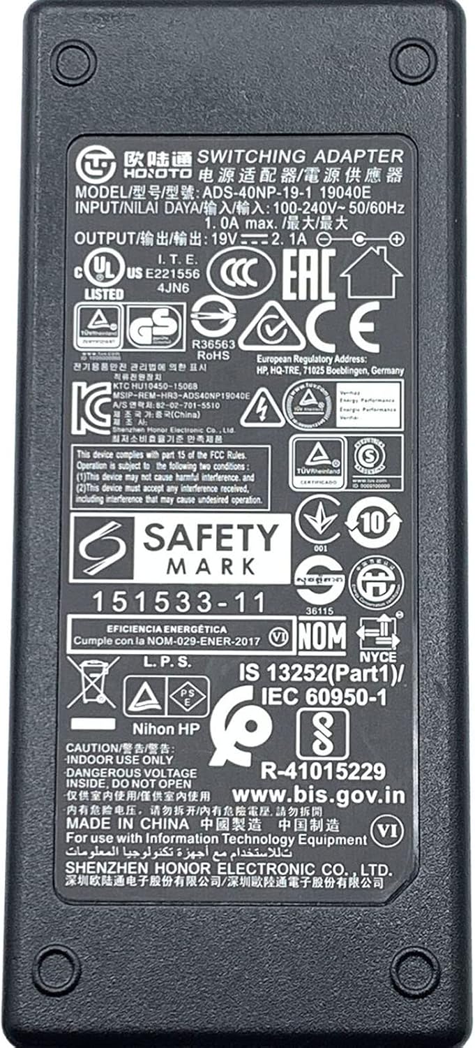 40W AC/DC Adapter 19V 2.1A Power Supply, connector 5.5x2.5 mm, Model: ADS-40NP-19-1 19040E.