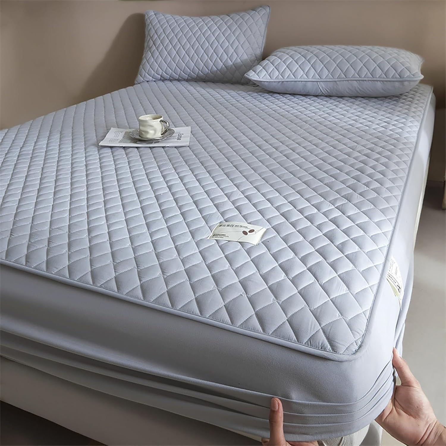 Comfortable and Breathable Fitted Sheetltra-soft and BreathableMade of thicker filling, the unique airflow system is permeable for fresh air & moisture, our mattress cover brings you a sweet dream.Deep Pocket DesignMattress protector adopt elastic fitting technology, our mattress protector can adjust most regular mattresses tightly.360° ProtectionThis mattress cover ensures hugs each corner of your mattress to keep it in place throughout the night without bunching, sliding, or coming off.Quiet SleepThe noiseless fabric brings you comfortable sleep without a crinkling sound or plastic feel. The mattress protector will provide a great convenience for your golden sleep.Easy Care & CleanYou only take the mattress protector off & slip it in your washing machine and then low tumble dry.Size:120x200cm(47x79inch)150x200cm(59x79inch)180x200cm(71x79inch)200x220cm(79x87inch)Package includes:1PCS x Mattress Protector (Pillowcase not included, need to buy separately)Notes:1.Due to manual measurement, there is a certain error in the product size.2.Due to lighting effects and shooting angles, there may be chromatic aberration in the product, please understand.3. If you have any questions, please feel free to contact us and we will provide you with the best solution.