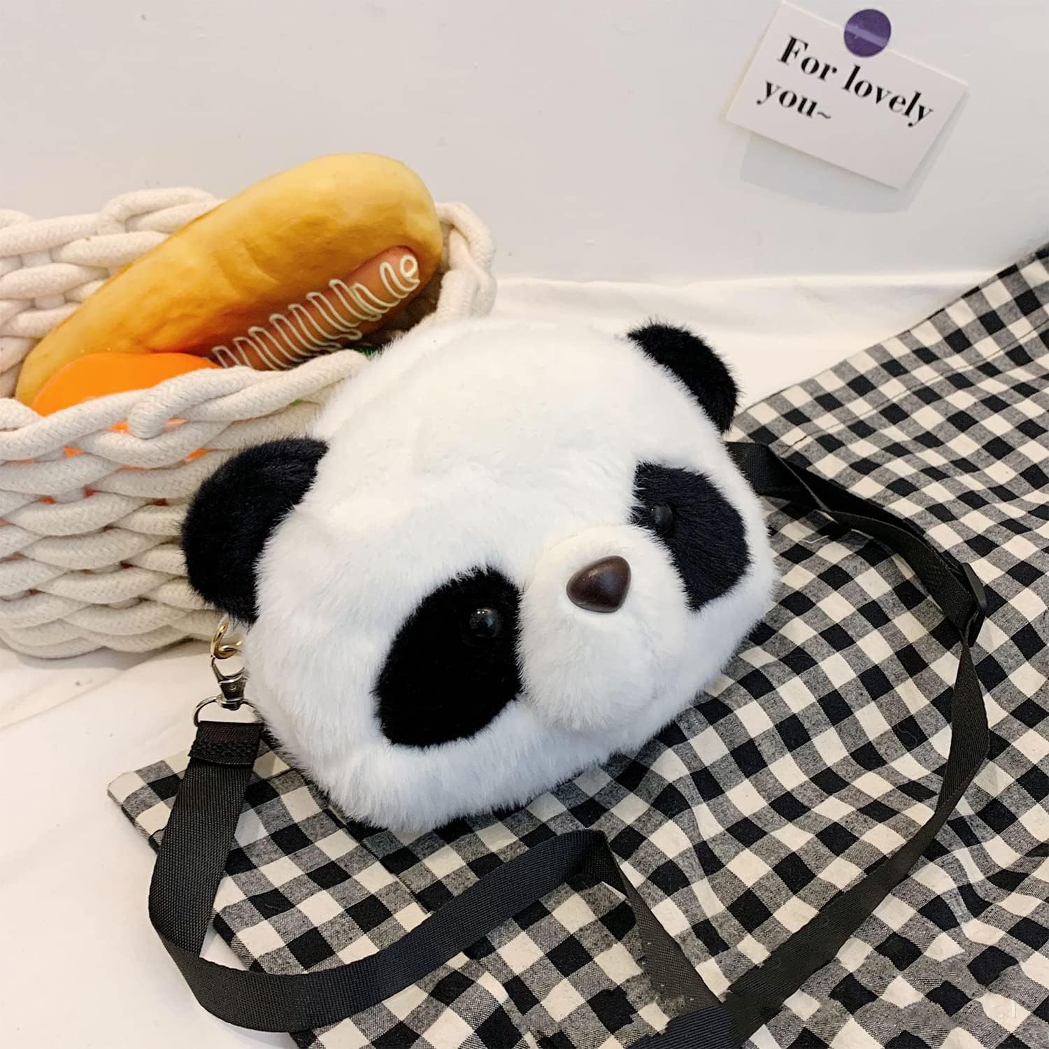 Specific Information:Name: Panda Bag Material: Short PlushWeight: 0.1 kgSize: 18*15*8 cmColor: Black and whitePackage: 1 pack of panda plush walletDesign: The girl purses is made of good quality short plush, soft and comfortable touch, not easy to shed and pilling, easy to clean; Adjustable and removable straps, comfortable to wear, it is not only crossbody bag, but a cute panda purse; Cute panda design, pretty plush bag for girls and adult; The plush wallet is designed with large capacity, can hold your phone, mirror, makeup stuff or other items of middle size