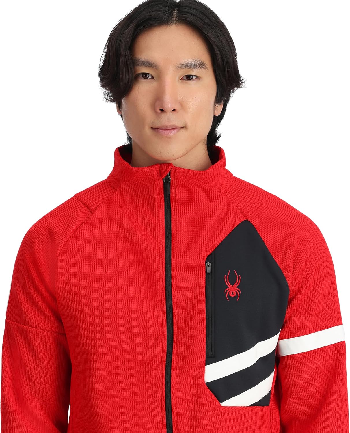 The Wengen Bandit fleece jacket is an ideal layering piece, featuring lightweight polyester sweater knit bonded to anti-pill fleece and stretch side panels. Its classic, sporty design with contrasting racing stripes is perfect for layering under a ski jacket yet stylish enough to be worn as a light jacket on it's own.