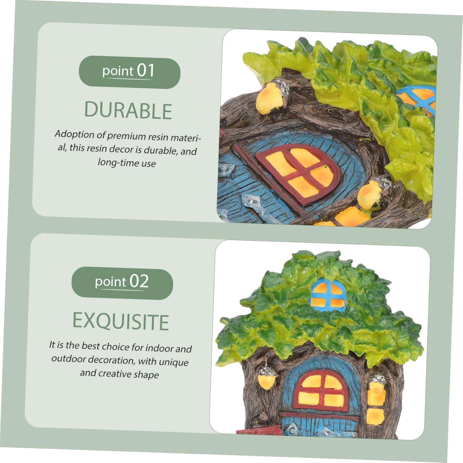 Package List 1 x decor Features -Material:Resin DIY Fairy Door Decor -Size:24.00X18.00X6.00cm/9.43X7.07X2.36in fairy door for trees -Color:Assorted Color fairy houses - Our Fairy House will add accent to any garden decoration, yard gnome, lawn gnome, garden statue, miniature fairy fairy craft. - The resin door design sculpture can withstand conditions at outdoor gardens fairy door craft. - Creative appearance design can match with many household decorative styles very well Resin Fairy House Door. - With fine craftsmanship, looks beautiful and elegant, a nice decor for your outdoor garden mini house ornament miniatures. - This small resin ornament can also be used for decorating your garden, yard, etc fairy house decor.Goods Informationfairy door for trees This product is a small house model landscaping ornament, made of resin material, which is safe and gentle, convenient and practical.fairy house statue The production process is excellent, the appearance is vivid, and the color is simple, which can play a good decorative effect
