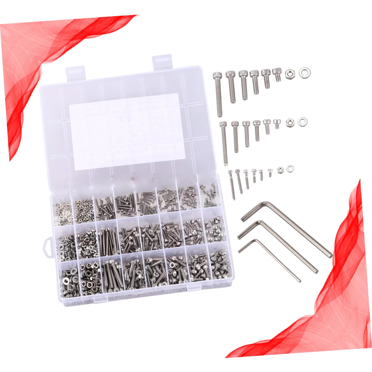 Package Include 1 set of 1080pcs x Set Characteristics - Package Size: Approx. 19.5x 13x3.6cm head screw - Material: Stainless Steel screw. - Package Quantity: 440pcs. Socket bolt and nuts - screws and bolts - With Plastic Box for convenient access and storage socket screw. - for use in confined areas where the head needs to be flush or below the surface metric bolts. - Different sizes of meet different requirements metric screws. - Premium Stainless Steel Socket Head Screws Nuts Kit, , strong and water-proof for and use. - Fixing component, industrial and construction fasteners. Used widely in the appliance, equipments, ship assembly and other machinery industry.Goods Informationmetric screws Package Quantity includes 1080 Pieces Socket Head Screws Nuts Assortment in different sizes of M2, and for various uses.socket screw It is made of stainless steel which features and for and stable use.screws and bolts This item is a set of assorted screws for computer repair
