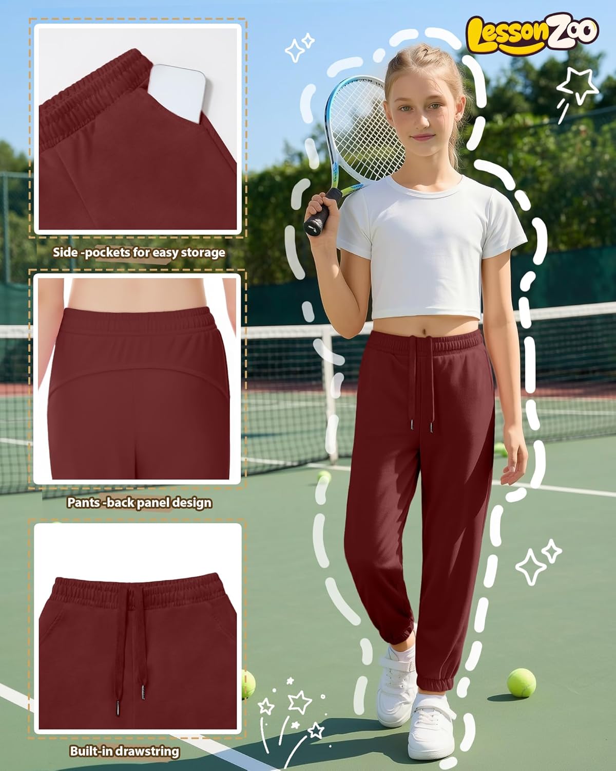 Features: Ideal choice: The girls' casual sweatpants are made from comfortable and soft fabric, making them an ideal choice for active wear for kids and teenage girls. The multi-pack is convenient for replacement or as a gift for your child. Caring tips: Machine or hand washable: wash in cold water on a gentle cycle, then hang to dry. Do not bleach—it may damage the fabric's quality and color. Specifications: Material: 100% Polyester Package includes: 3 X tapered jogger sweatpants for girls Notes: Manual measurement, please allow slight errors on size. The color may exist a slight difference due to different screen displays Please do not wash our products with other clothes, and bleaching is not allowed