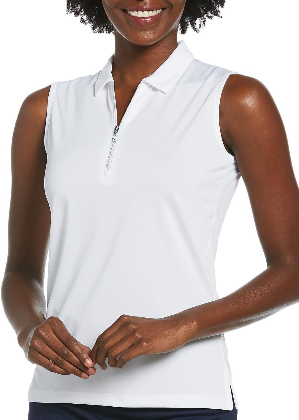 Step onto the fairway in style with our quarter-zip sleeveless golf polo for women, blending modern flair with timeless comfort. Crafted from soft jersey fabric with a heathered finish, this golf shirt offers lightweight breathability, perfect for hitting the course in the warmer weather. The built-in Opti-Dri moisture-wicking technology keeps you cool and dry, enhancing breathability for a refreshing game every time. It is designed with a self-collar and a quarter-zip closure, which adds a chic touch, making it easy to slip on or off. Plus, its high-quality, performance-packed fabric ensures that machine washing and drying won't affect its top-tier performance. Elevate your golfing experience with style and ease!