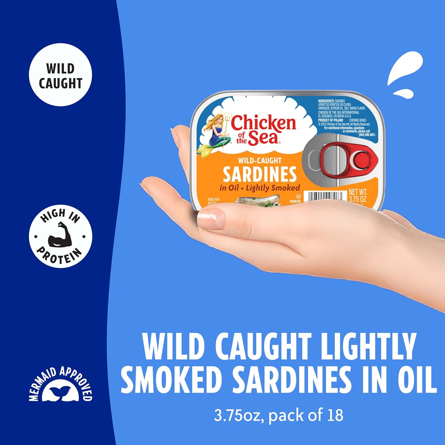 Product Description Rich and flavorful, our certified wild caught sardines are small-but-mighty nutritional powerhouses that add umami boldness to any dish. Chicken of the Sea Sardines are packed in oil for a delicious and fresh taste. The perfect high protein sardines canned for your active, healthy lifestyle. This gourmet tinned fish features heart-healthy omega-3s and calcium; with 12 grams of lean protein, it’s perfect for keto, paleo, and Mediterranean diets. Our wild caught fresh sardines are right at home in any recipe. Add the bulk sardines to favorite meals including sandwiches, vegetables, wraps, rice bowls, pastas, salads, melts, dips, and beyond, or enjoy them on their own. Chicken of the Sea has been in business since 1914, providing smoked fish overflowing with flavor and packed with protein. Our SeaChange sustainability plan has solutions for both people and the planet to support a better future for all. We’re expanding our efforts to restore and preserve ocean, land, plant, and animal resources to protect our natural ecosystems. Manufacturer Contact Information https://chickenofthesea.com/company/contact-us/