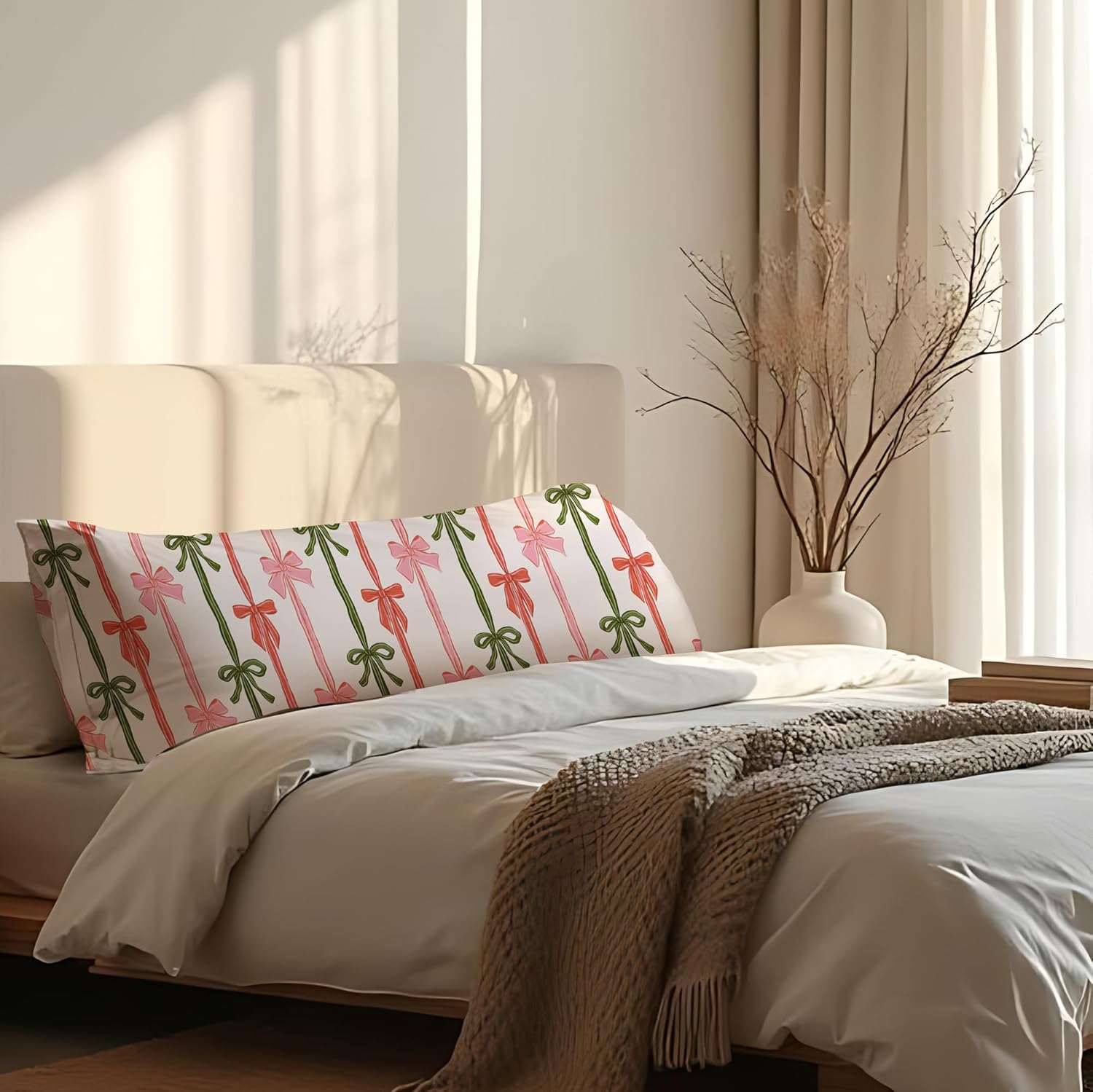 This pillowcase is made of soft flannel fabric, which is comfortable and cozy. It measures 20 x 54 inches and can be used in various spaces for both decoration and comfort. The product features a hidden zipper design, and the easy-to-care-for material ensures convenience in daily use. This stylish and elegant body pillow will add a touch of grace and comfort to your bedroom.