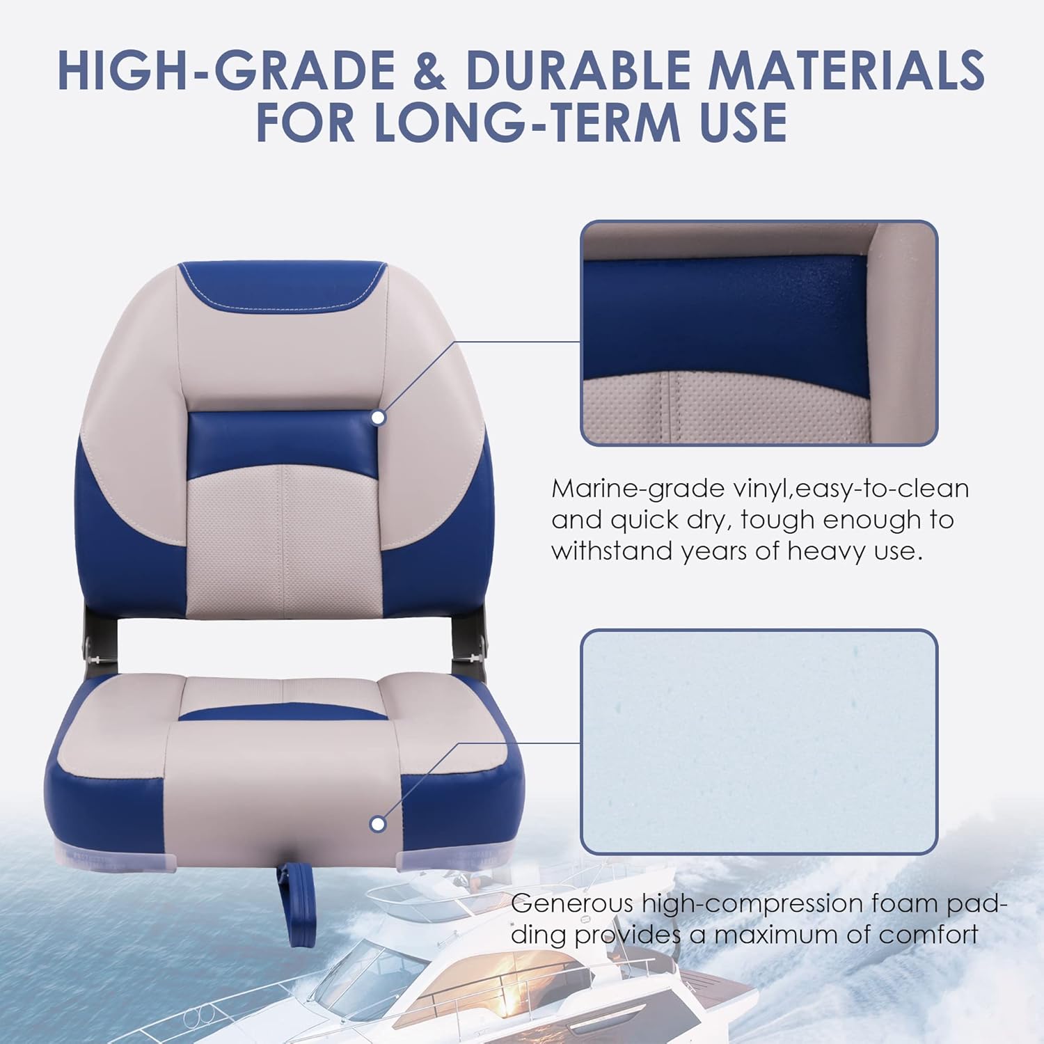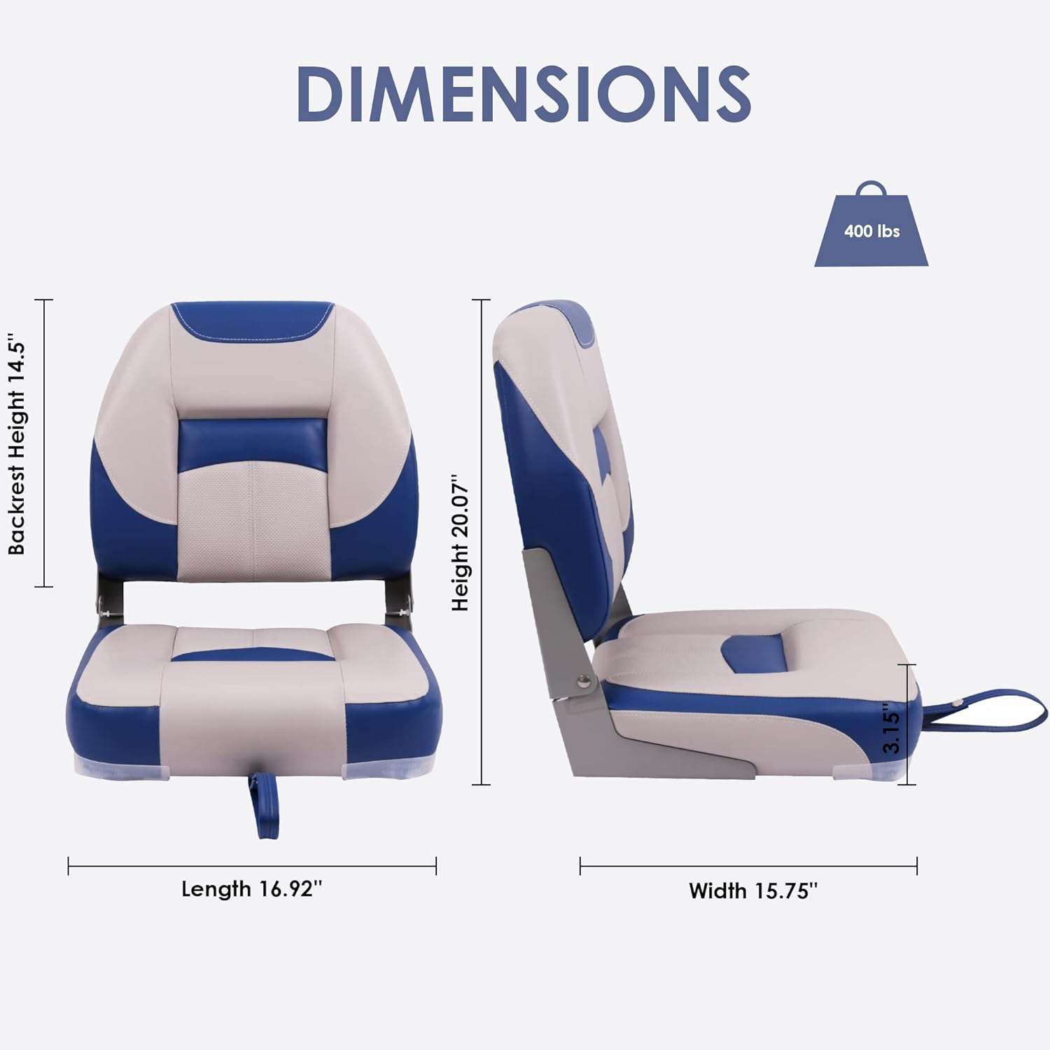 With heavy duty molded plastic frame, the angler low back seat easily stands up to rough marine environment. High density foam padding with marine grade vinyl ensure all day comfort. Fold down design with tie down strap make it easy for storage.