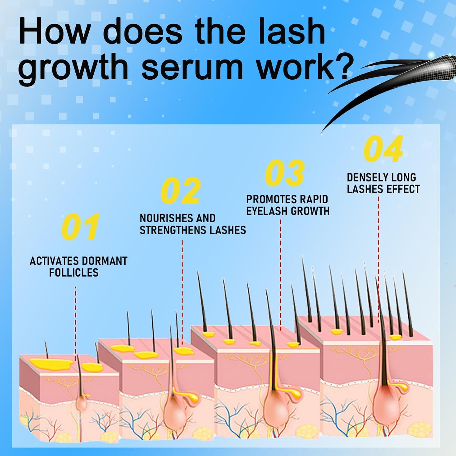 | Product Benefits | Promotes eyelash growth and increases density and length |