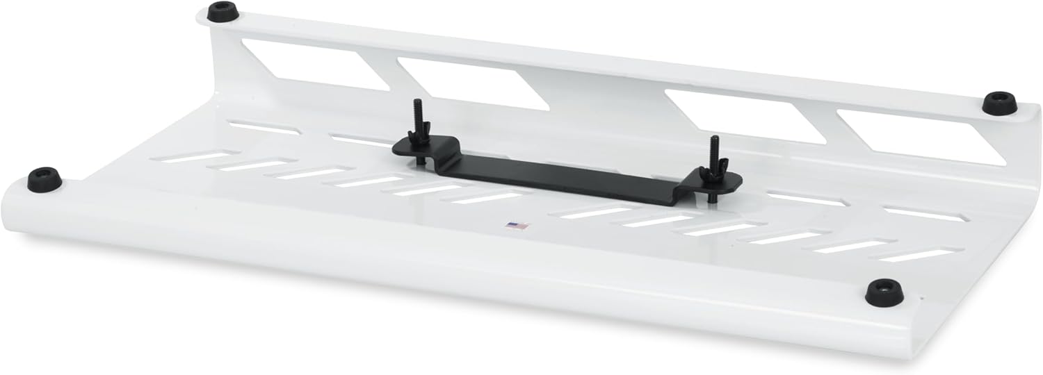The GPB-BAK-WH is expertly designed and built for stable stomping, this lightweight aluminum pedal board offers unrivaled utility and a unique touch of personal style thanks to its white finish. The large 23.75” x 10.66” surface of the board easily fits up to 8 pedals, including volume and wah type while the slightly slanted angle provides comfort and easy access to each pedal. Included adhesive hook and loop strips make it easy to reconfigure your pedals at any time and numerous top-side cutouts make it easy to hide all your cabling out of sight under the board. The included mounting bracket on the board’s underside is compatible with most common power supplies and a rear-facing cutout gives an easy exit for your primary power cord. No-slip rubber feet keep the board stable while its all-American construction deliver unparalleled durability. Easily pack up your gear into the heavy-duty Nylon carrying bag without removing your pedals. When you are ready to leave, grab the comfortable handle or sling it over your shoulder with the adjustable, removable strap and head out. Upgrade your pedal board to the premium quality that only Gator provides with the GPB Aluminum Pedal Board Series.