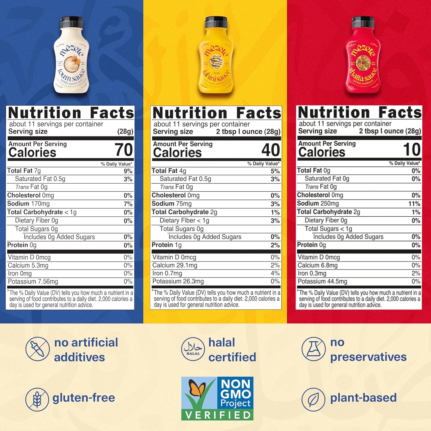 YEARS OF DEDICATION AND DISCOVERY:In the Middle East, much love and care are constantly poured into food preparation and cooking. Creating Mezete was no different, dedicating over 30 years to research and development to perfect it, ensuring our food stays fresh and tasty for long time without any preservatives. Shelf-Stable:Mezete sauces are crafted to stay fresh, so you can enjoy its authentic flavor anytime. No refrigeration is needed before opening, making it easy to store in your pantry and ready to use whenever you crave that creamy goodness. DIP, DRESS, DRIZZLE:Mezete vegan sauce is the perfect companion for every meal. Use it as a creamy dip for veggies, breads; dress your favorite salads and grain bowls with its rich flavor; or drizzle it over roasted veggies, wraps, and sandwiches for an effortless upgrade. However you enjoy it, Mezete vegan dressing adds a deliciously authentic touch to every bite. Let'Z MeZete!