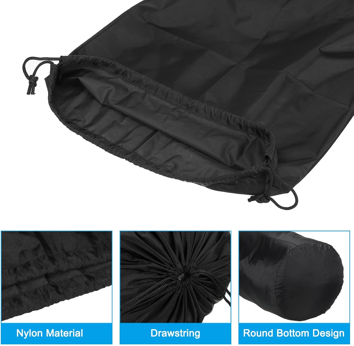 The stuff sack is suitable for you to take anything you need, such as clothes, blankets, sleeping bags, pillows, hats, gloves, books, and electric devices, and great for outdoors, camping, hiking, cycling, backpacking, traveling, trekking, motor homes, etc.SpecificationColor: BlackMaterial: 210 NylonSize: 31 x 60cm / 12 x 24 inch (D*H)Packing List: 1 x Stuff SackAdvantageMade of premium nylon, waterproof, lightweight and portable, sturdy and durable, and wear-resistant. Comes with a drawstring, and is convenient to open and close, is flexible to adjust the tight and loosen. With its round bottom design, fashionable and stable, has good weight loading, and large capacity.InstructionCompact, and easy to carry. It is great to keep the items tidy and organized.NoticePlease confirm the size and color, before placing the order.