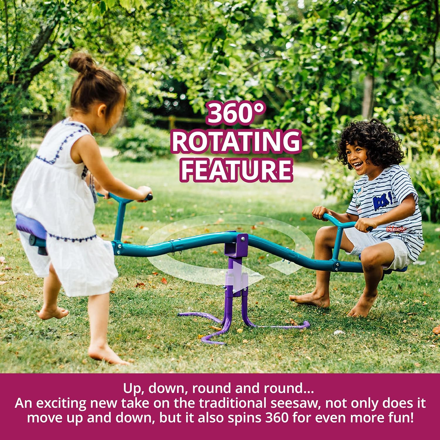 The Plum® Rotating Metal Seesaw takes classic playground fun to the next level, offering kids an exciting combination of up-and-down motion and a full 360° spin! Perfect for energetic little adventurers, this dynamic seesaw encourages active play, balance, and coordination while keeping children entertained for hours. Whether they’re spinning, bouncing, or laughing with friends, every moment becomes a thrilling outdoor adventure. Built to last, the Plum Rotating Seesaw is crafted from powder-coated steel, ensuring long-lasting durability and excellent resistance to rust and weathering. Its ergonomic seats and easy-grip handlebars provide comfort and stability, while the included ground anchors ensure the seesaw stays safely in place during play. Quick and simple to assemble, it’s designed with both fun and safety in mind — giving parents peace of mind that their children are enjoying a secure, high-quality play experience. Ideal for backyards, playgrounds, or any outdoor space, the Plum Rotating Seesaw transforms ordinary playtime into extraordinary adventures. It’s not just a kids playset — it’s a fantastic way to help kids develop coordination, confidence, and a love for active outdoor play!