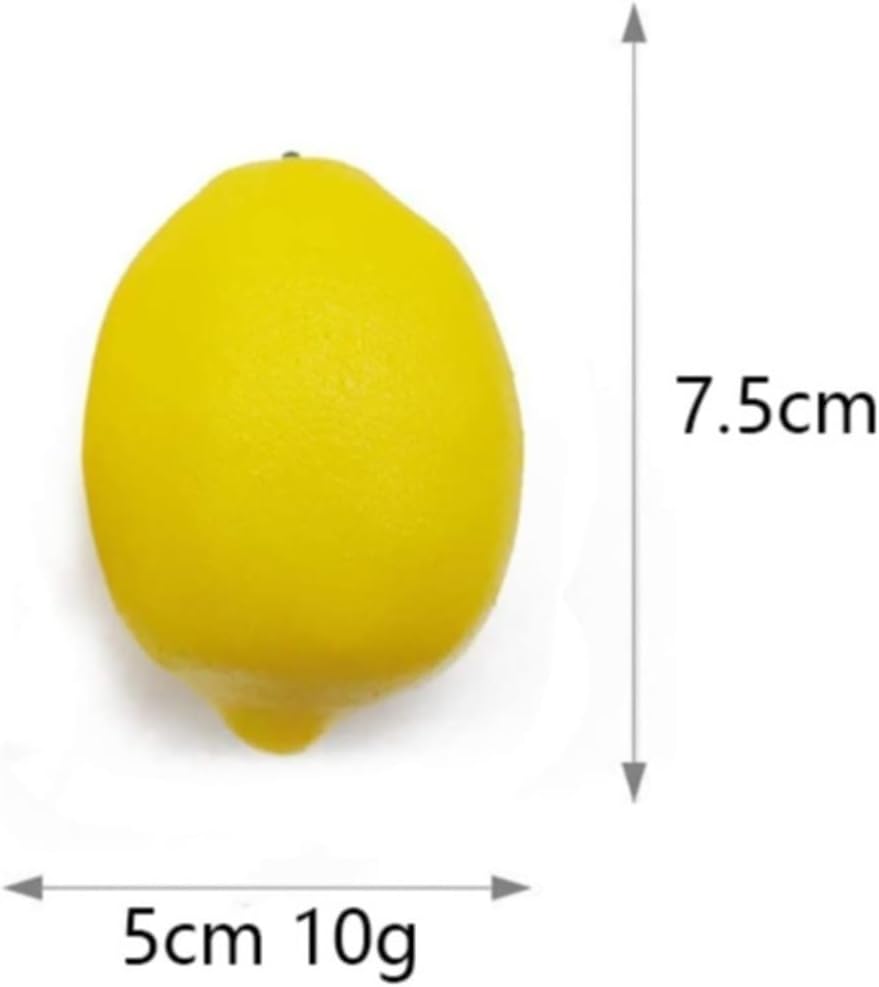 Everlasting Freshness:Bring a vibrant, garden-fresh look to your kitchen or dining room all year round,no more worrying about fruit flies or rotting produce—just perfect, "always-fresh" decor.Product InformationProduct Name: Simulated LemonType: Simulated fruitMaterial: FoamDimensions: 5 x 7.5 cmWeight: 10gQuantity: Package contains 30 simulated lemons.Warning: This simulated fruit model is for display only and is not edible. Keep out of reach of children and pets to avoid accidental ingestion.Effortless Home Styling:Instantly upgrade your fruit bowls, glass vases, or tiered trays. No maintenance, no bruises, and no mess—just a sophisticated look that stays pristine with a quick wipe.