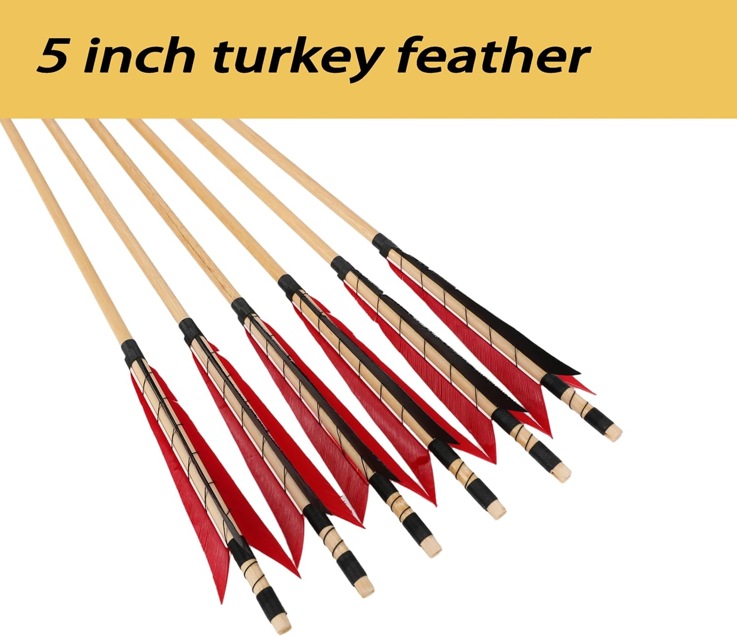 Item name: traditional wood arrow Color:as picture shown Material: wood Total length: 32 inch Feather length:5 inch OD: 8mm Field point material: stainless steel Weight:about 27-35g(Pure natural wooden arrows, no guarantee of uniform weight) Package: 6/12pcs wooden arrows