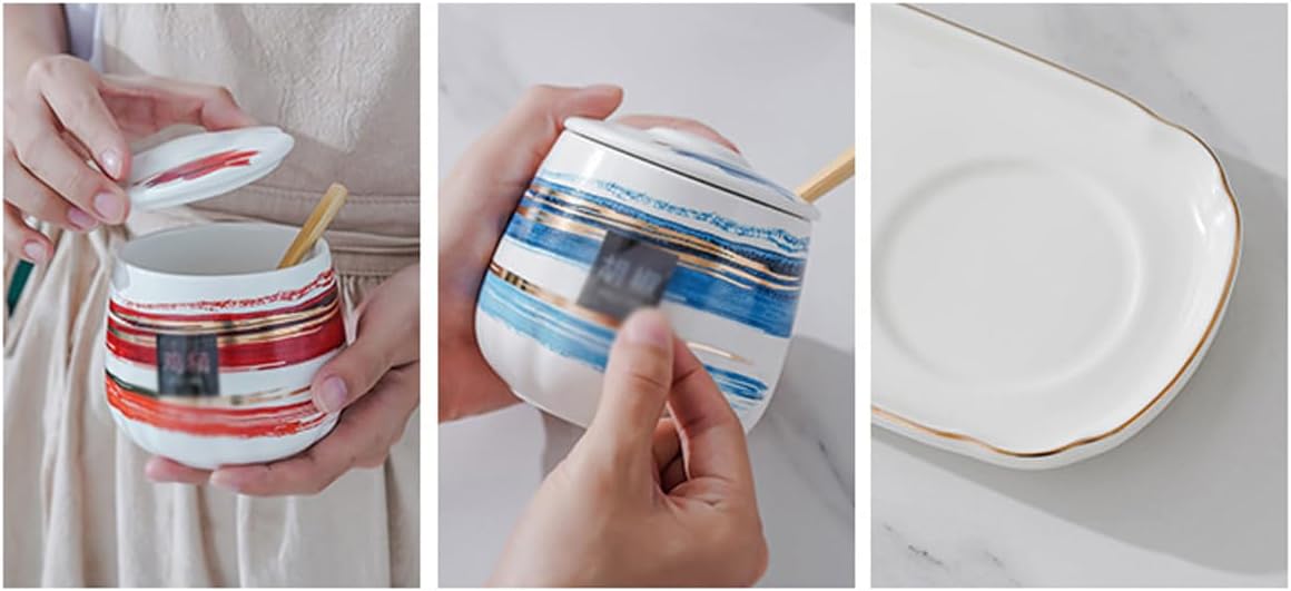 This glamorous ceramics sugar bowl will complement on any home decor.Suitable for Home, Hotel, Cafe, Buffet, Party, etc.Perfect to Serve Sugar, Pepper, Spice, etc.If you needed a sugar bowl for your coffee bar but didn't want something too big, this porcelain sugar jar is perfect for your need.Intended Use:1. This Porcelain Condiment Jar is suitable for storing a variety of condiments and spices. Such as sugar, salt, spice, seasoning, pepper, corn starch and chicken broth powder and more.2. Perfect for home, hotel, cafe, buffet, party.3. As a perfect container for your table or kitchen, keep your kitchen clean and modern.Made of high-quality ceramics and natural bamboo, safe for healthSmall size and large capacity, saving spaceExquisite and smooth appearance, perfect home decorationComes with bamboo lid and spoonDust-proof and moisture-proof, long-term storage