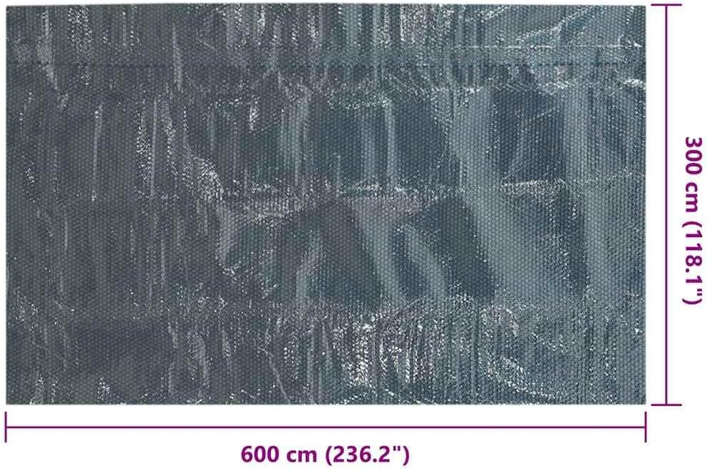 This premium floating solar pool cover is made to elevate your outdoor pool experience. It provides excellent protection while boosting water temperature retention. With its stylish black and blue design, this cover looks great and works hard to let you enjoy your pool all summer long, making it a must-have for any pool owner.Lightweight Design: The cover is designed to be lightweight, making it easy to move and handle. Perfect for quick installation and removal, especially during those seasonal changes.Heating Functionality: This pool cover traps warmth from the sun to keep your pool nice and warm, ensuring it's inviting even in mildly warm weather.Waterproof Material: Made from strong waterproof PE film, it’s built to last, even in harsh outdoor conditions. This means long-lasting durability, which is vital for outdoor use.Minimalist Aesthetic: With its sleek design, the matte black and blue cover looks great by any pool. This modern palette adds a touch of style while blending nicely into your outdoor space.Rectangular Shape: Measuring 236.2 x 118.1 in, it fits a range of pool shapes and sizes, ensuring a snug fit that maximizes effectiveness in retaining heat and keeping debris out.Color: BlackShape: RectangularMaterial: Synthetic PolyethyleneIndoor/Outdoor: Outdoor OnlyCover Included: YesRoom: OtherDimensions: 236.2 x 118.1 x 0 in (L x W x H)Weight: 4.12 lbsLadder: NoBrand: vidaXLDelivery Contains: 1 x Pool CoverAssembly Required: NoSKU: 92987EAN: 8720286140161