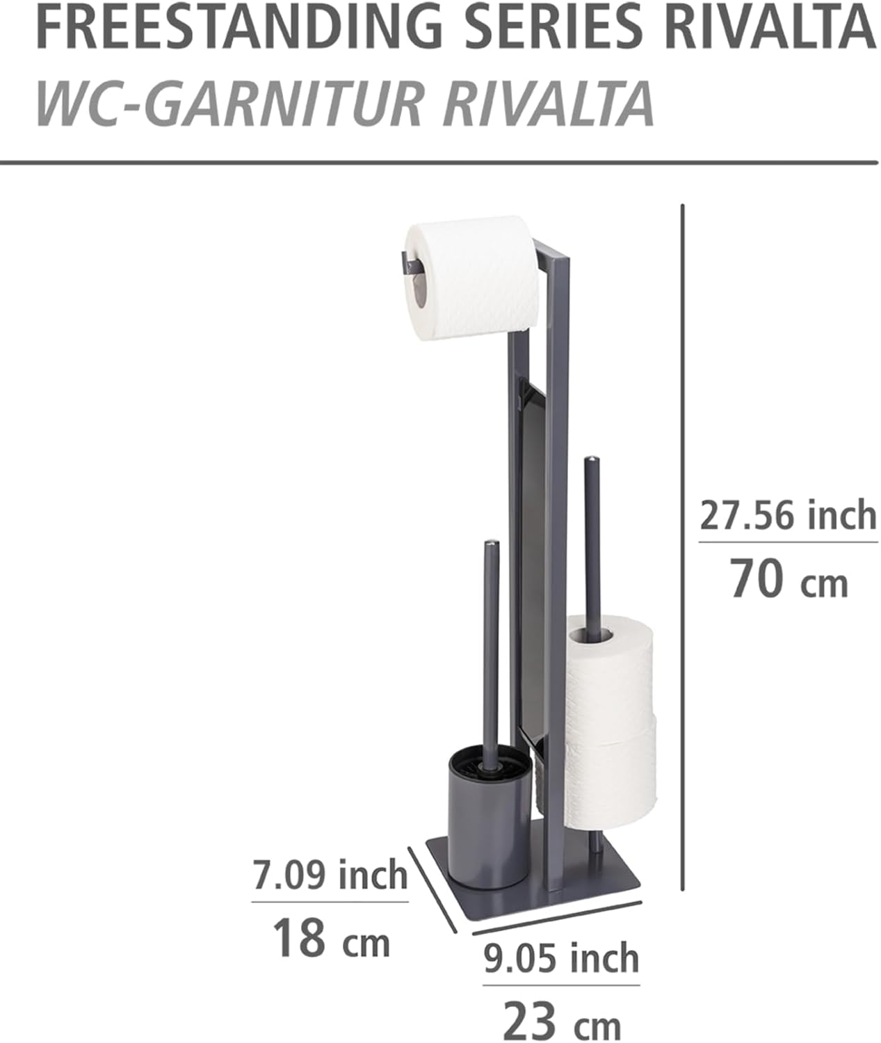 | Item Type Name | Rivalta Freestanding Toilet Brush and Toilet Brush Set with Toilet Roll Holder Matt Varnished Steel Safety Glass Separator Plate 18 x 70 x 23 cm Grey |
